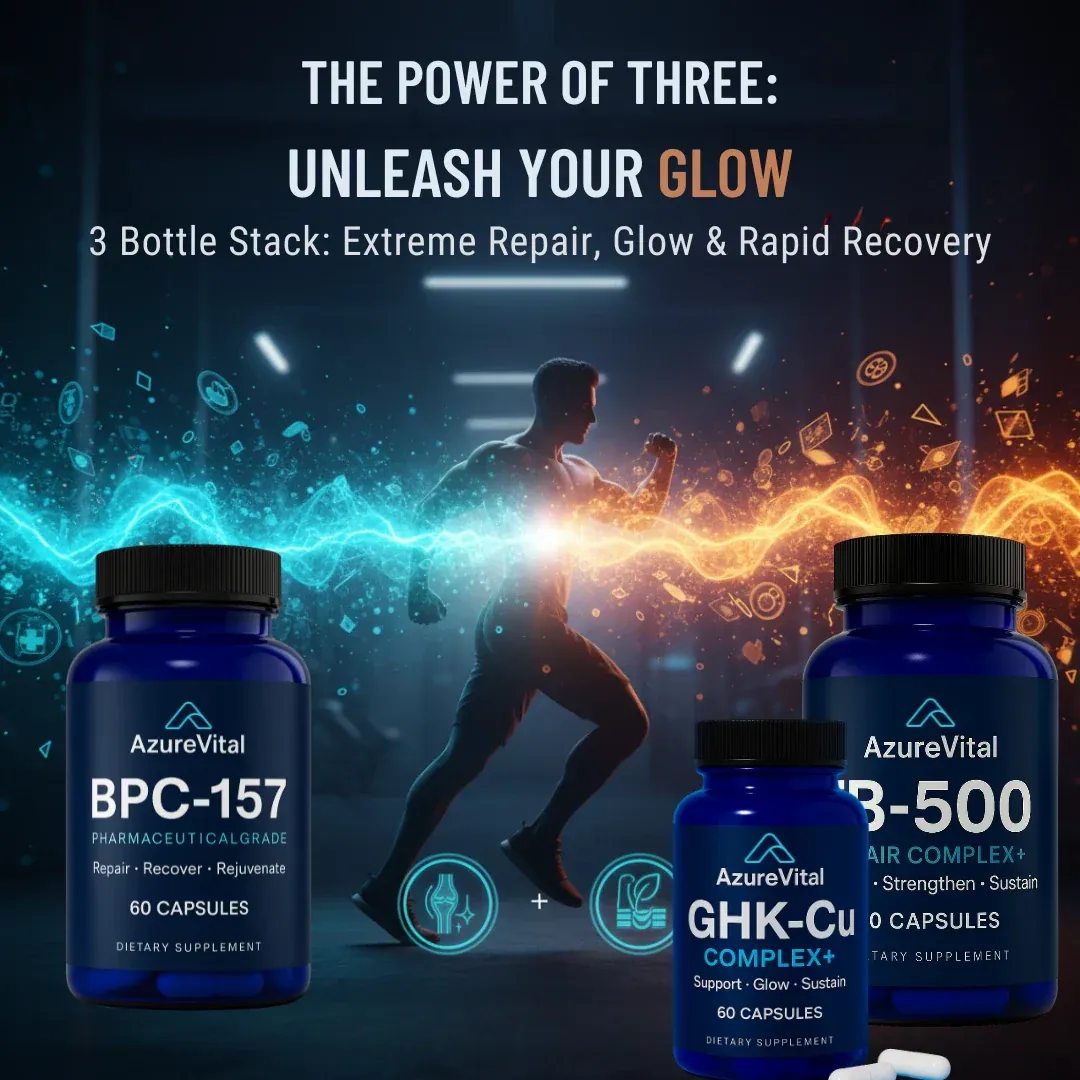 The Glow Stack combines three well-known wellness peptides – BPC-157GHK-Cu, and TB-500 — formulated to support your body’s natural renewal processes, overall well-being, and healthy-looking skin.
